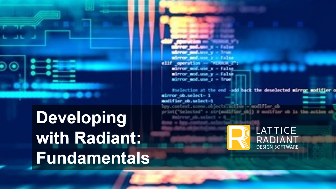 Learn all about the Lattice Radiant design software. This course covers every software element from workspace and views, managing projects, IP implementation, handling constraints, understanding reports, running simulations, to carrying out debugs. Go through the entire design flow from Synthesis, to Map, to Place & Route (PAR), to Programming. Learn about powerful tools within Radiant that will ease design implementation and optimization.